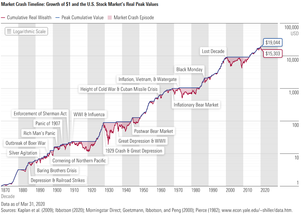 Market Crash Timeline Growth Of 1 And The U S Stock Market S Real Peak Values Isabelnet